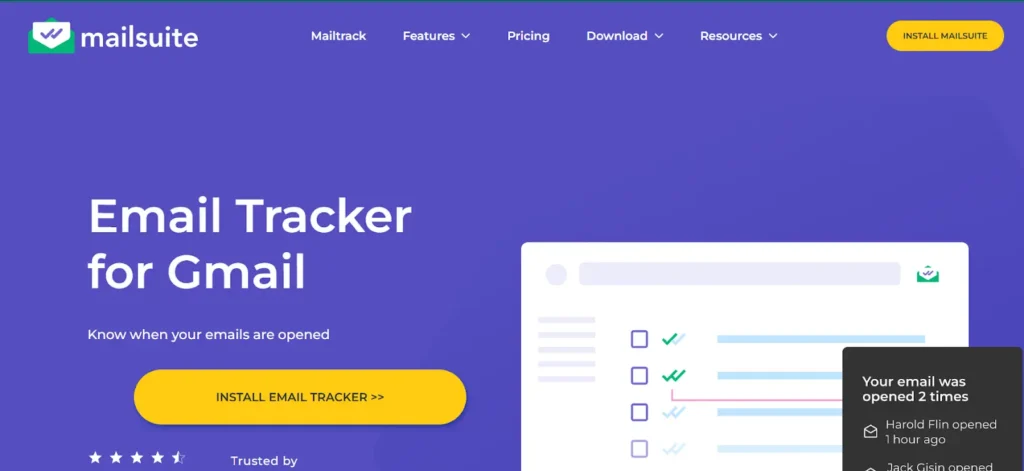 Mailsuite, previously known as Mailtrack, is a simple and affordable email tracking tool designed primarily for Gmail users. It provides real-time notifications when an email is opened and offers link tracking on paid plans. Known for its ease of use and budget-friendly pricing, Mailsuite is a great choice for individuals and small teams who need basic email tracking without complex CRM integrations. However, it only uses a single tracking domain, which could impact email deliverability over time.