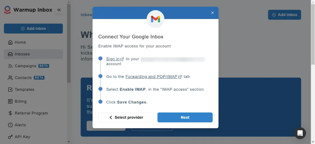 If you’re connecting your gmail you should enable IMAP first in your Gmail settings. Just follow what it prompts you to do on the screen. And click Next