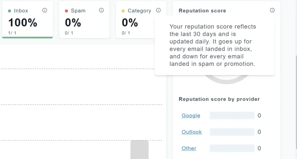 Your Reputation Score tells you if your inbox is healthy. It’s rated from 1-100. If your score drops below 80, your emails might not reach inboxes.