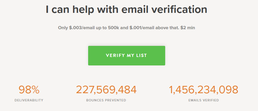 - Cheapest bulk cleaning: MillionVerifier