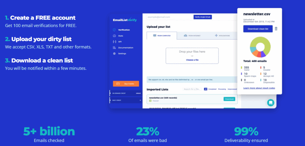 EmailListVerify is a fast, accurate, and affordable email list cleaner built for teams who want to reduce bounce rates without overcomplicating their workflow. It’s simple – just upload your list, run the validation, download clean results. No learning curve required. It’s not an all-in-one outreach platform, but that’s the point: it focuses on verification and does it well.