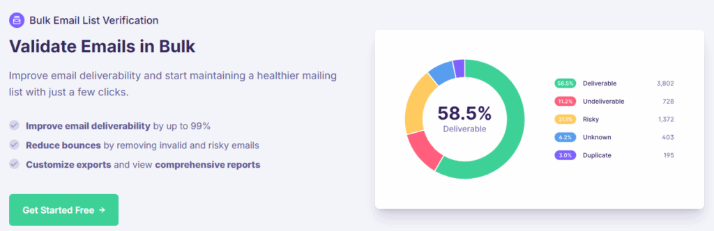 Best for: Teams that want verification plus deliverability insights in one place.