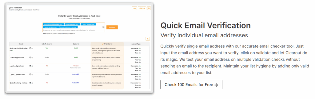 | Easy integration with CRM and signup workflows | Accuracy varies more on catch-all domains |