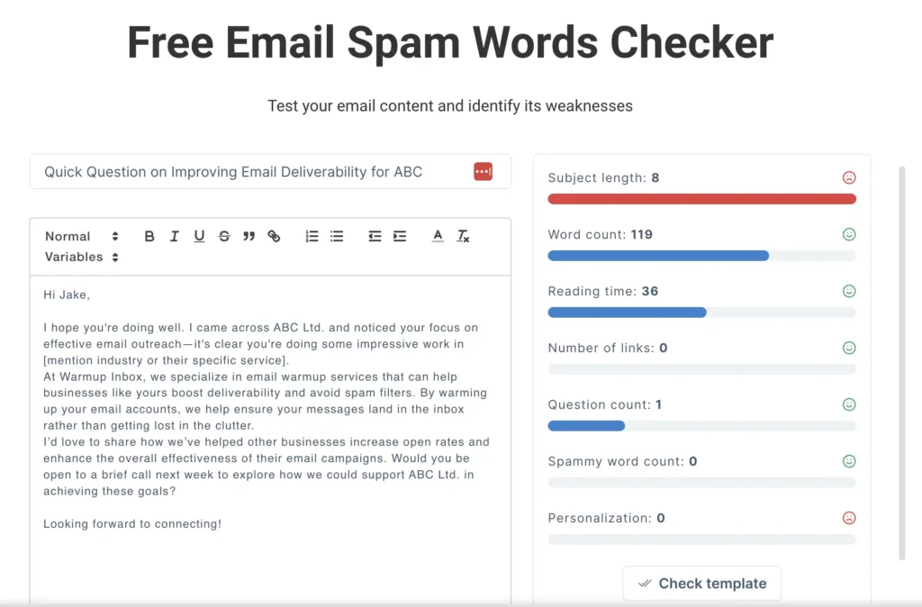 Purpose: Scans your email content for words and phrases that Gmail’s filters might flag as spam.