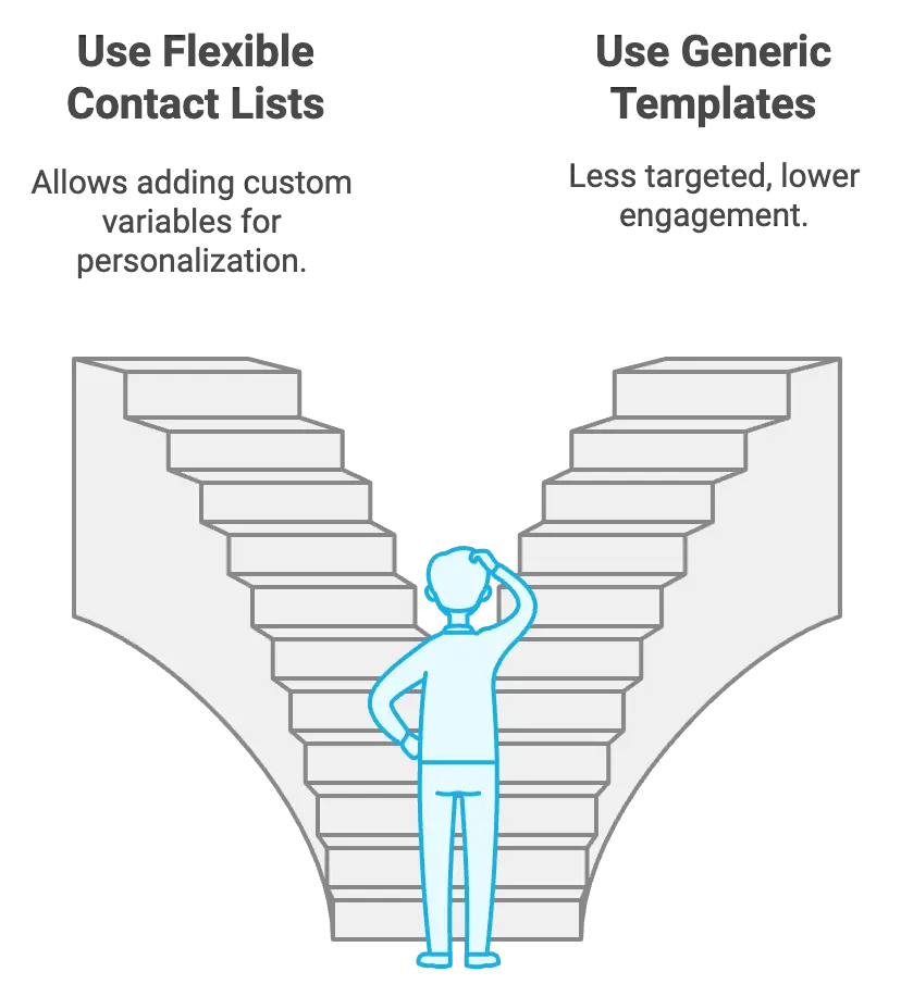 Use our flexible contact lists to add custom variables, personalizing each email template for a more targeted approach and higher engagement.