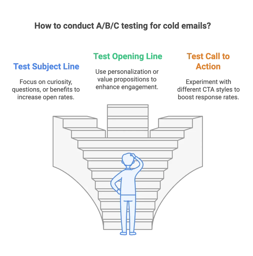 A/B/C testing in cold emails involves creating and testing three different variations of a specific email element (e.g., subject line, opening line, call to action) to identify which performs best. Here’s a step-by-step approach: