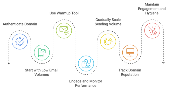 Warming up an email domain is essential when sending emails from a new or inactive domain to build trust with email service providers (ESPs) and improve deliverability. Here’s a step-by-step process to ensure a smooth warmup: