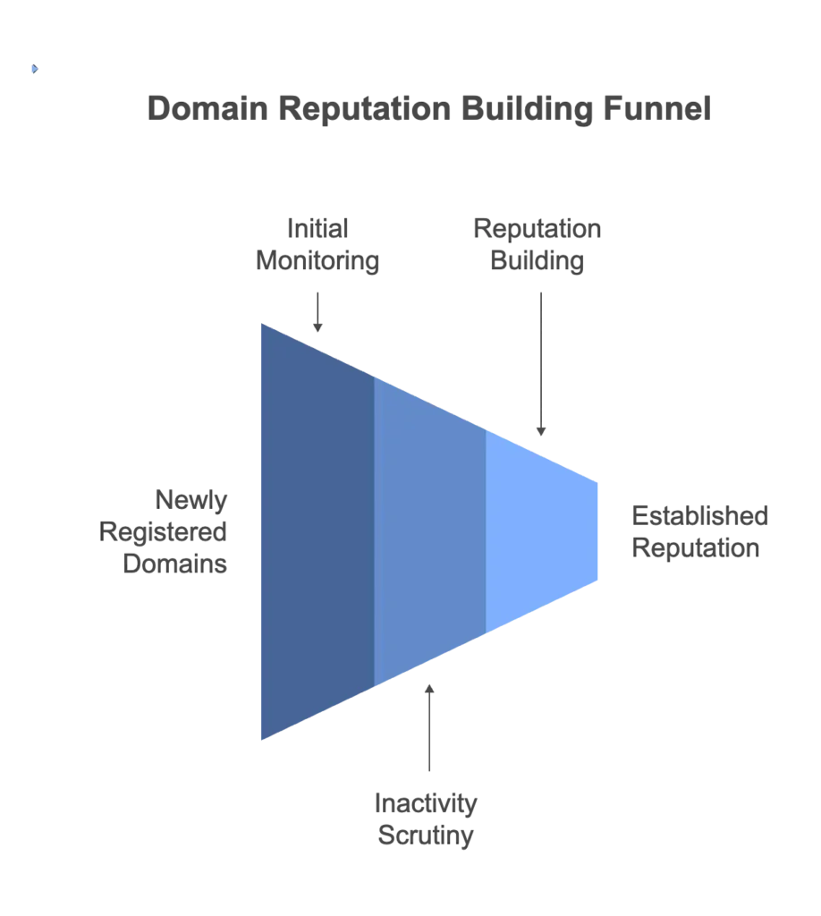 - Reputation building period: The domain is considered “new” until it establishes a sending reputation through consistent, high-quality email engagement and low spam complaints. This warmup period, during which the domain gradually builds credibility, typically spans several weeks to months.